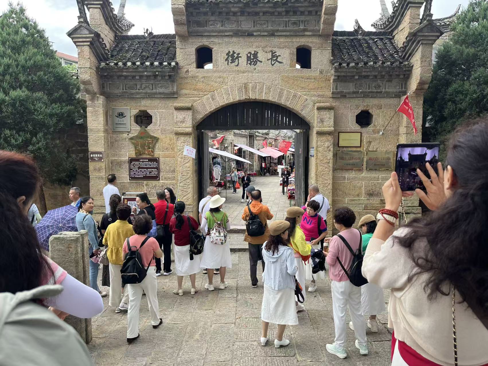 在七里坪长胜街,合唱团成员们缓步于红四方面军指挥部旧址、七里坪工会、鄂豫皖苏维埃银行等革命遗迹前,纷纷聚焦红色宣讲展板,久久不肯离去,一位老同志激动地说:“重温先辈们的艰苦岁月,我们更加感受到了今天幸福生活的来之不易。我们人老了,但精神不能老。”另一位老同志也激动地说:“我们要继续发挥余热,把红色基因一代代传下去。”