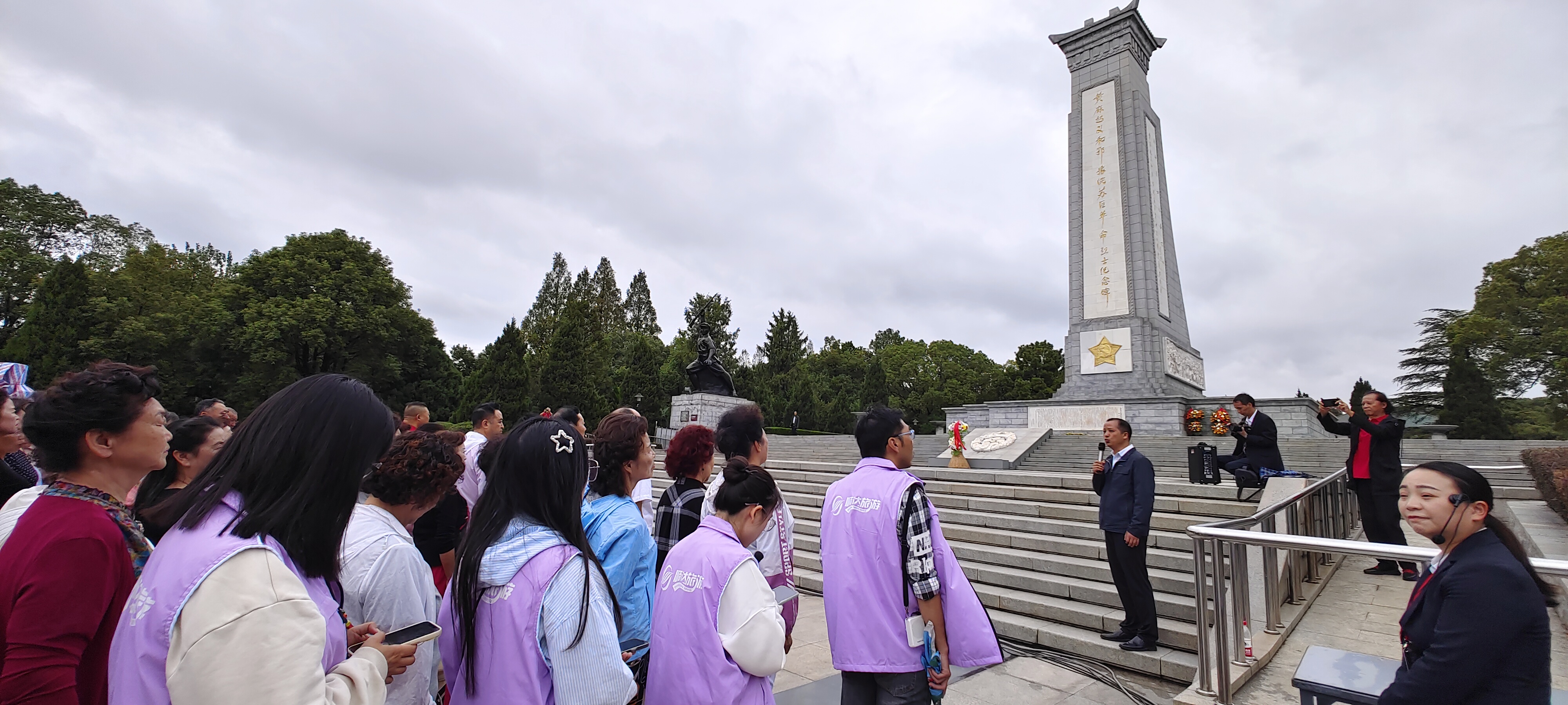 在庄严肃穆的黄麻起义和鄂豫皖苏区革命纪念碑广场,老同志们整齐列队,面向革命烈士纪念碑深深鞠躬,表达对革命先烈的深切缅怀。随后,大家齐声合唱了《保卫黄河》《游击队歌》《八月桂花遍地开》等红歌。一位老人深有感慨地说:“在红安这片土地上歌唱党和红军,我真正感受到歌曲特别的意义,更体会到了歌词里的真情。”